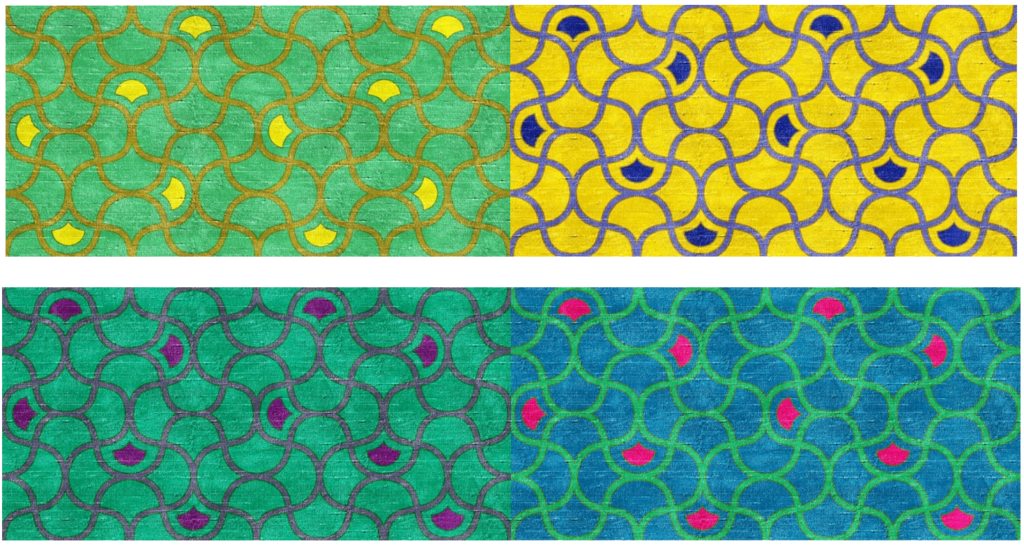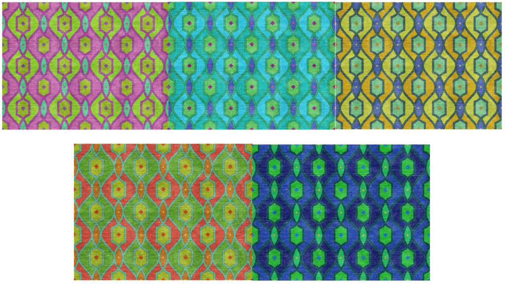 Il progetto tessile di “The Milanese textile experience” è caratterizzato da pattern all over con disegni e colori che si possono mixare tra loro.