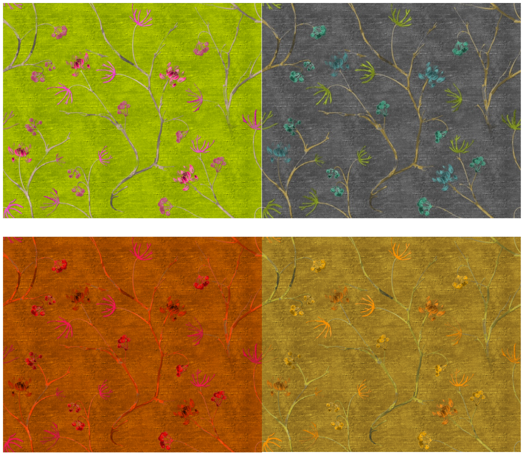 Per dare maggior ricchezza e volume al disegno ho disegnato una texture di shangtung di seta come background che potesse dare una suggestione tattile con l’effetto di un trompe l’œil.